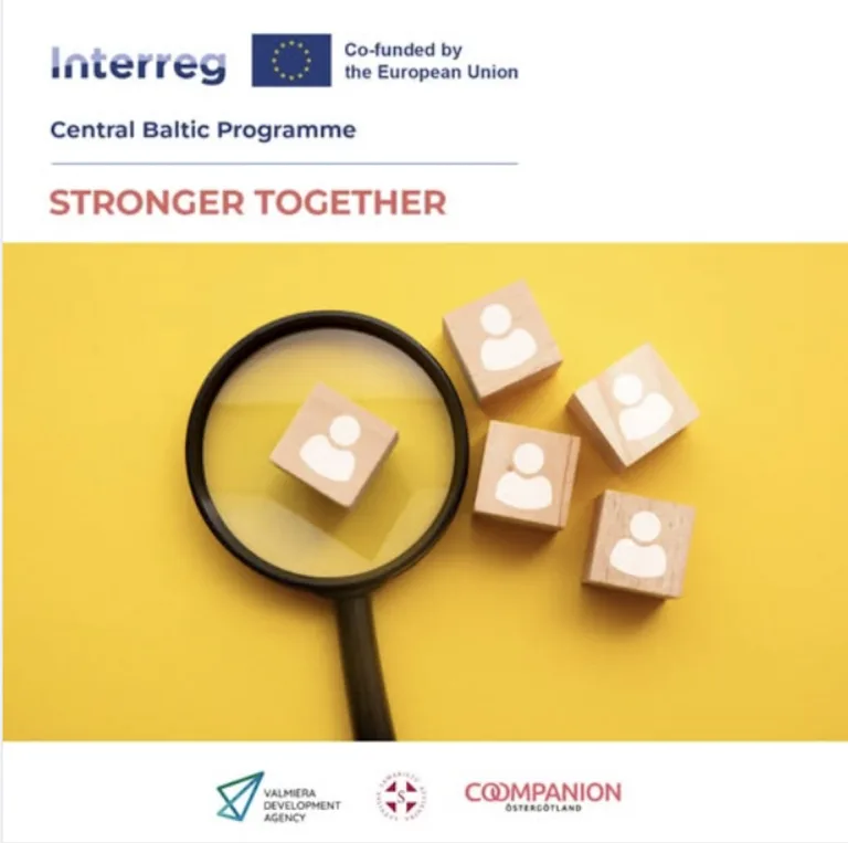 Projektet Stronger Together (Stronger together towards a more inclusive labor market) är ett Eu-finansierat projekt, en del av Interreg Central Baltic. Målet med projektet är att arbeta för en mer inkluderande arbetsmarknad genom att uppmuntra arbetsgivare att implementera en antidiskrimineringspolicy i sina organisationer och säkerställa anställning av personer med intellektuella funktionsnedsättningar eller andra särskilda behov. Projektet bedrivs i Lettland och Sverige och kommer att genomföras i samarbete med Samaritan Association of Latvia, Valmiera Development Agency (Lead Partner) och Coompanion Östergötland.